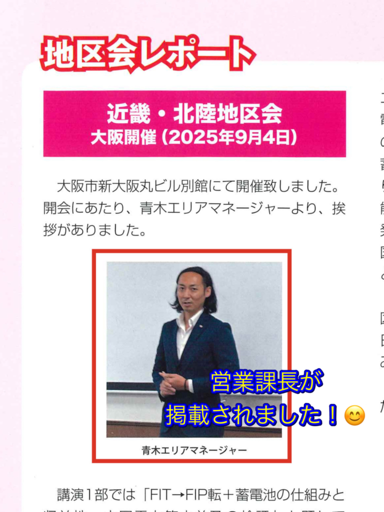 近畿・北陸地区会ページに弊社営業課長が掲載されました!💡