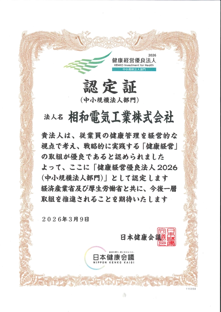 このたび当社は、「健康経営優良法人2026(中小規模法人部門)」に5年連続で認定されました。